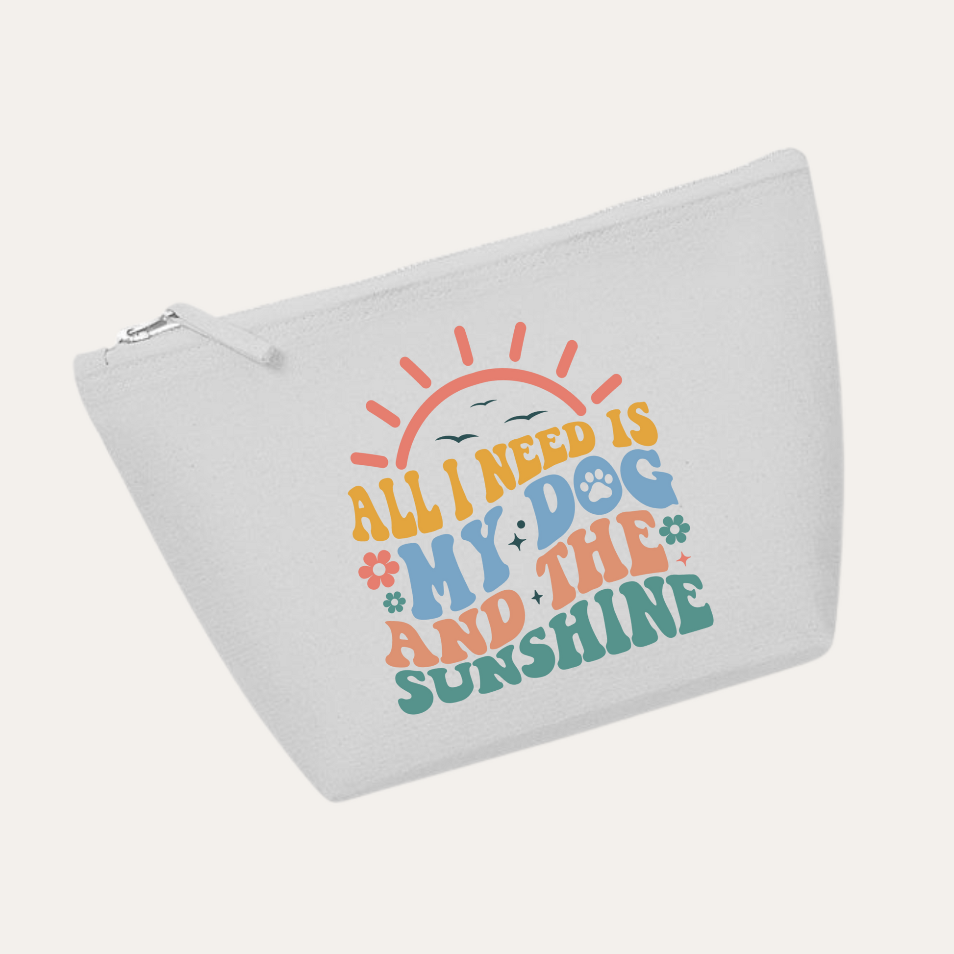 Our "All I need is my dog and the sunshine" printed bags are a fun and practical way to show off your love for your four-legged best friend! Made from 100% brushed cotton canvas, these high-quality bags are both durable and stylish. Available in two versatile sizes, the smaller pouch is perfect as a pencil case, a compact treat bag, or for keeping small essentials organized. The larger bag is spacious enough to carry all your travel must-haves—whether it’s your own essentials or your pooch’s favourite goodies.